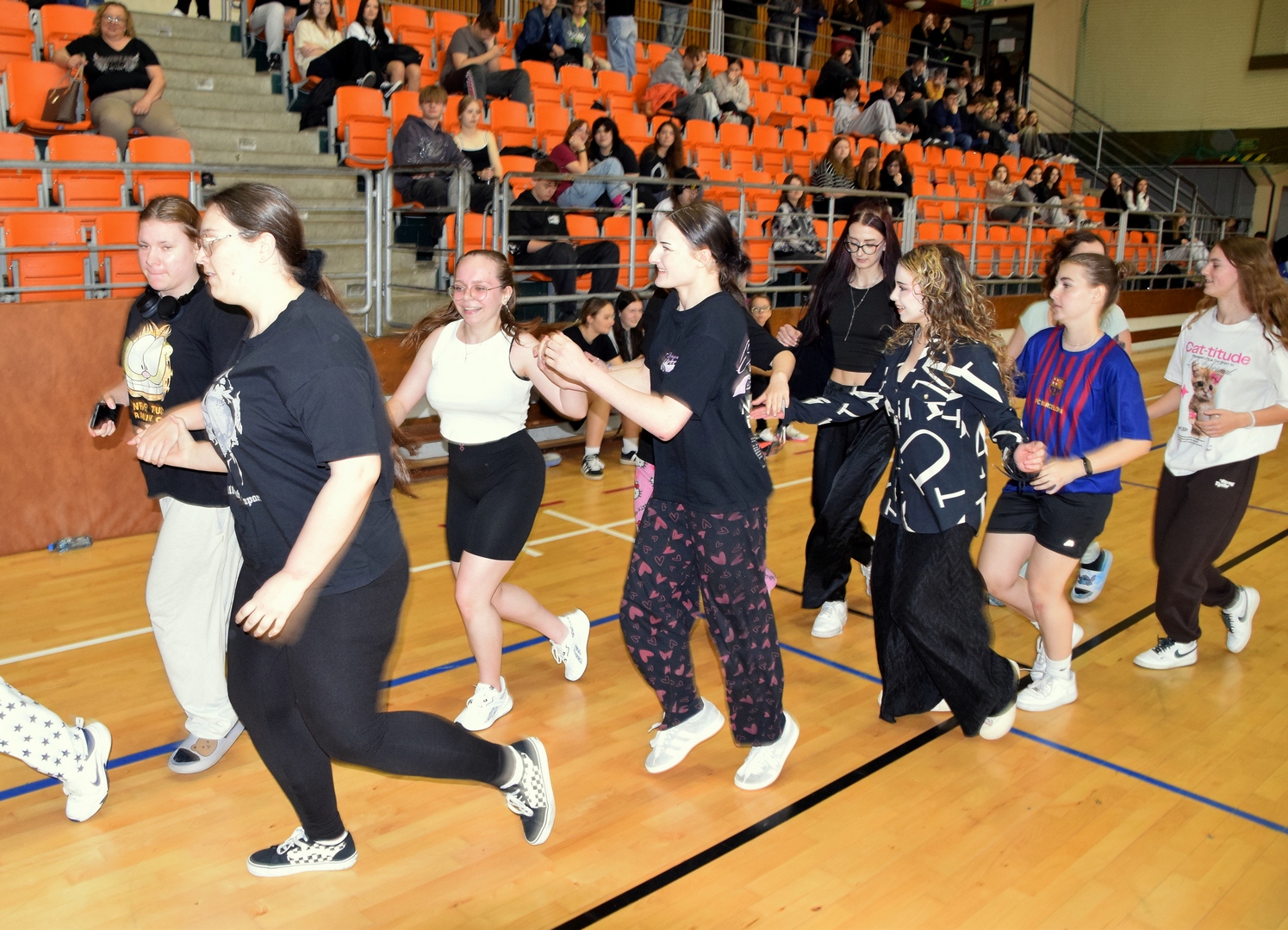 W dniu 29 maja 2025r. w naszej szkole odbył się festyn sportowy z okazji Dnia Dziecka, który przybrał wyjątkową formę – sportowej rywalizacji nauczycieli z uczniami. Imprezę rozpoczął Pan Dyrektor Grzegorz Owsiński, który przywitał wszystkich zebranych, życzył dobrej zabawy i uczciwej sportowej rywalizacji. Uczniowie i nauczyciele brali czynny udział w następujących rozgrywkach sportowych: piłka siatkowa, piłka koszykowa, piłka nożna, badminton. Dużym zainteresowaniem cieszył się taniec „Belgijka”, podczas którego cała zgromadzona publiczność i uczestnicy zawodów sportowych wspólnie tańczyli na parkiecie. Niespodzianką dla publiczności był występ zespołu tanecznego pod opieką p. Moniki Kuś, do którego dołączyły nauczycielki naszej szkoły. W przerwach między rozgrywkami można było zakupić grillowane kiełbaski – dochód z ich sprzedaży przeznaczony był na cele charytatywne. Na wszystkich uczestników rozgrywek sportowych czekał słodki poczęstunek. Połączenie sportu, zabawy i wspólnego spędzania czasu stworzyło wyjątkową atmosferę, która pokazała, że uczniowie i nauczyciele mogą nie tylko współpracować, ale i świetnie się razem bawić.