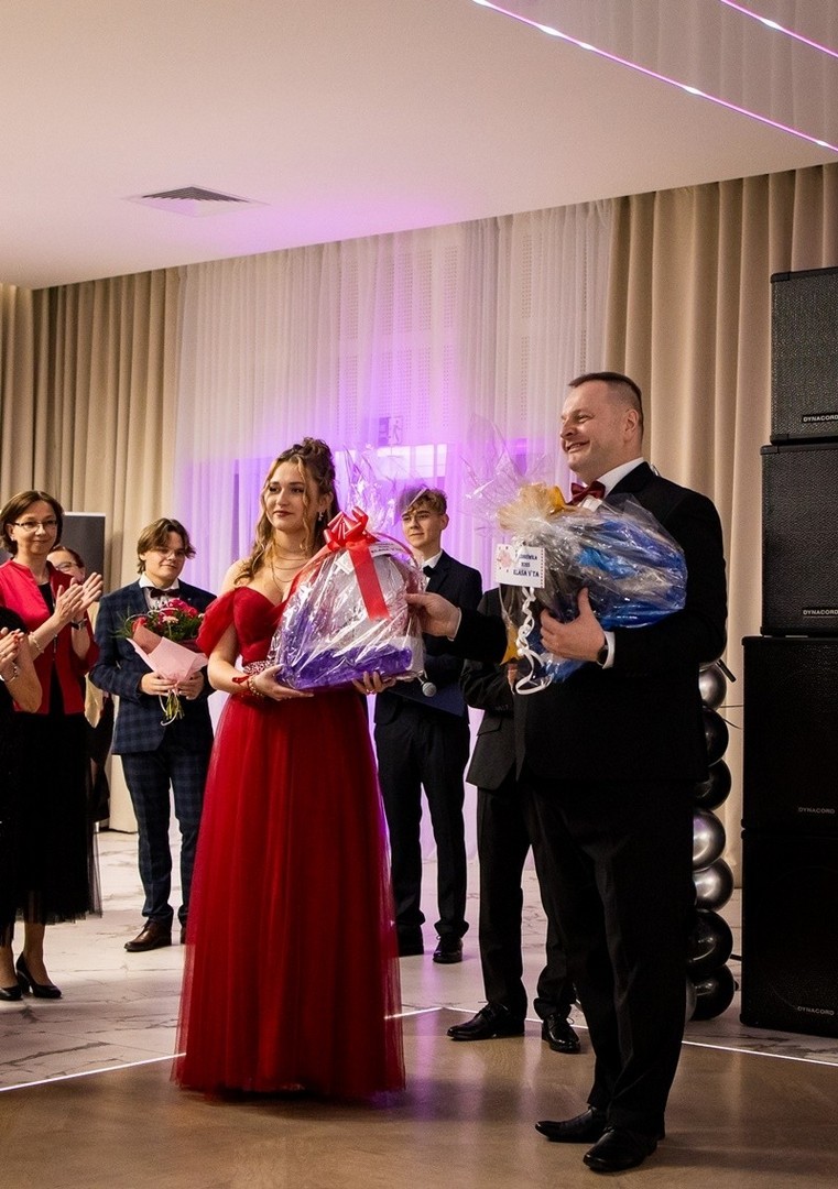 Dyrektor osobiście wręczył wyróżnionym uczniom świadectwa z czerwonym paskiem, nagrody książkowe oraz dyplomy, gratulując im wybitnych osiągnięć. Podkreślił, że miniony rok obfitował w liczne sukcesy zarówno naukowe, sportowe, jak i związane z rozwojem edukacyjnym szkoły.