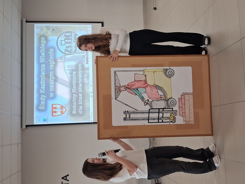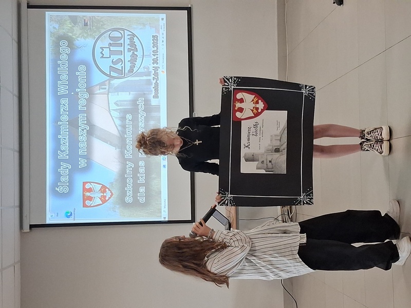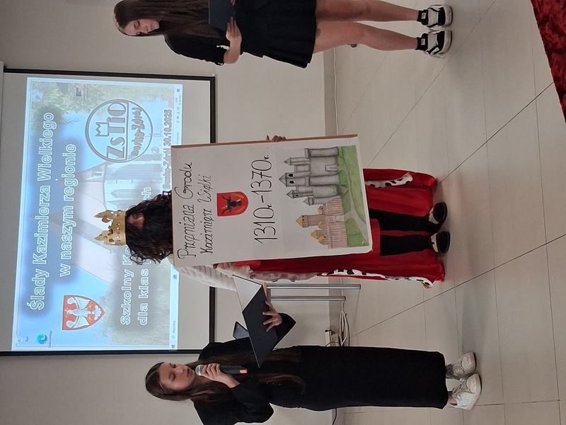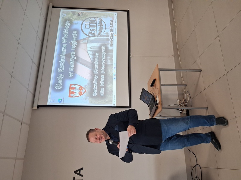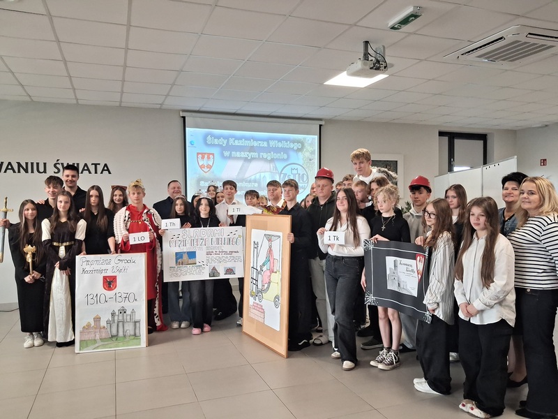 30 października 2025 roku w ZSTiO odbył się konkurs przeznaczony dla klas pierwszych „Ślady Kazimierza Wielkiego w naszym regionie”. Uczestnicy, pod czujnym okiem wychowawców, przygotowali plakat, prezentację multimedialną oraz zmierzyli się nową konkurencją, w której musieli napisać fraszkę. Wzięli także udział w turnieju, gdzie liczył się spryt i umiejętność pracy w zespole. Celem konkursu było zapoznanie uczniów klas pierwszych z sylwetką króla Kazimierza Wielkiego – patrona naszej szkoły i jego dokonaniami. Udział w tego typu przedsięwzięciu, to nie tylko poszerzenie uczniowskiej wiedzy, ale także integracja klas i dobra zabawa. Wysoki poziom, jaki zaprezentowali uczestnicy konkursu, pozytywnie zaskoczył komisję. Jury miało bardzo trudny wybór, gdyż każda klasa stanęła na wysokości zadania, zaskoczyła oryginalnością i pomysłowością szczególnie w konkurencji na najlepszą fraszkę o królu Kazimierzu. Pierwsze miejsce zajęła klasa I Tl, która otrzymała dofinansowanie do wycieczki szkolnej i „dzień bez jedynki" w każdym miesiącu nauki. Dofinansowanie do wycieczki szkolnej, ale już w mniejszych kwotach, otrzymali także uczniowie z klas, które uplasowały się na niższych pozycjach: II miejsce - klasa I Th, III miejsce - klasa I LO.